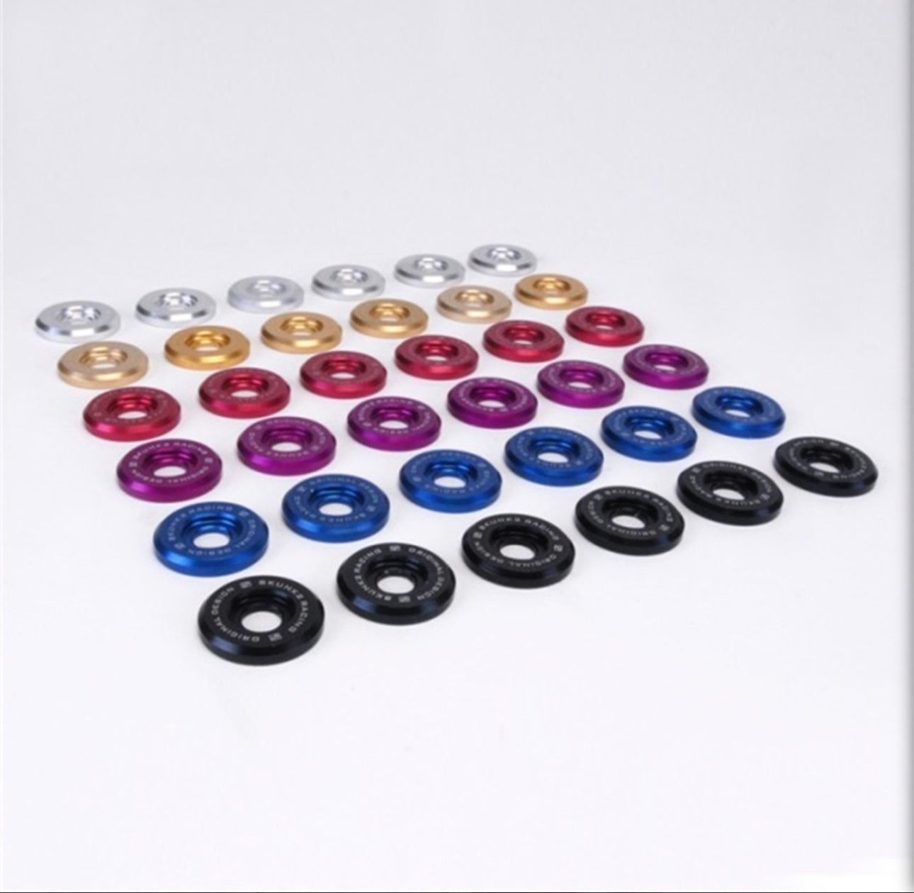 Skunk2 Fender Washers were designed to replace the factory hardware with stainless steel bolts flush-mounted inside of our unique, hard-anodized aluminum washers. Each kit includes six low-profile, 16.8mm-diameter washers and six flush-mounted, stainless steel bolts. Skunk2 Fender Washers are direct replacements for many Honda components that utilize 6Mx1.0 hardware, like fenders, headlights, radiator stays, hood hinges, and more. Only Skunk2 Fender Washers offer the most low-profile washers and bolts around, measuring more than 75% thinner than the factory washer and bolt combination.